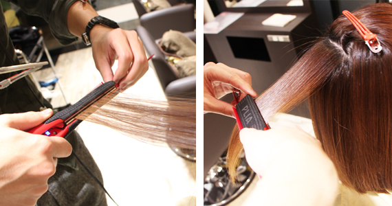 | 根元から毛先にかけてしっかり伸びて思わず触れたくなるようななめらかな手触りと艶感を表現します。 キューティクルの補修、保護をしながら枝毛キレ毛を抑制します 幅広いダメージレベル、クセの強弱に対応できるシンプルでスピーディーな施術工程と ダメージによってアイロンの温度も変えお客様のなりたいをなえます。 従来の縮毛矯正とは違い自然で柔らかな潤いのあるストレートです。 |